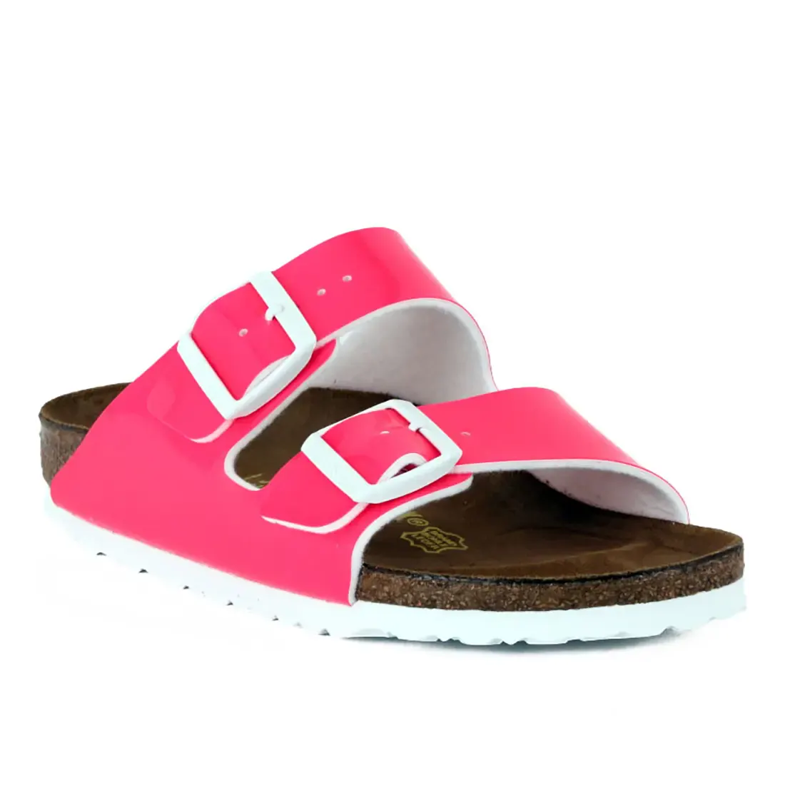 Le ciabatte Birkenstock Arizona patent neon pink sono una delle linee storiche del grande brand tedesco che entusiasma da decenni le donne con il suo design senza tempo. Grazie ai due cinturini regolabili individualmente, avvolge perfettamente il piede facilitando la camminata. La tomaia è in Birko-Flor®, un materiale sintetico resistente all’usura e delicato per la pelle con uno strato di vernice. La forma a conca piuttosto profonda nella zona del tallone sostiene la fascia plantare e mantiene il calcagno stabilmente nella sua posizione naturale. La parte anteriore del plantare presenta dei rilievi intermedi nella zona delle dita che consentono lo scarico del peso. Le fibbie ad ardiglione in colore coordinato completano l’aspetto raffinato del sandalo. Il modello Birkenstock Arizona patent neon pink donna è sinonimo di design intramontabile divenuto già da tempo una comodissima scarpa di culto.
