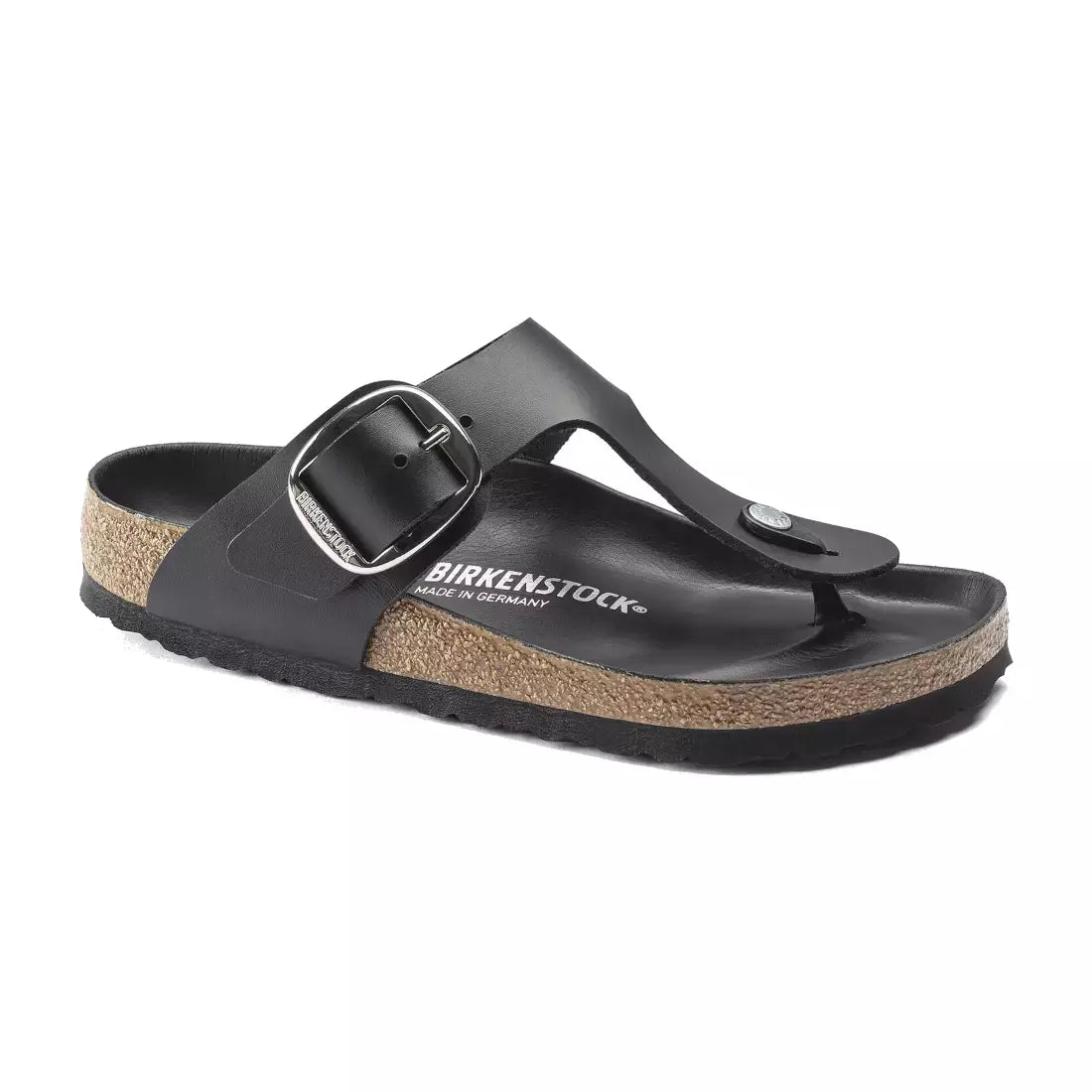 Le ciabatte Birkenstock Gizeh Big Buckle black donna sono una delle ultime novità della grande azienda tedesca. La tomaia è composta da pelle nabuk particolarmente spessa. La variante Big Buckle presenta una fibbia ad ardiglione grande ed elegante, un bel particolare che spicca su questi sandali molto sobri. La parte anteriore del plantare presenta dei rilievi intermedi nella zona delle dita che consentono lo scarico del peso. Il sottopiede del plantare semi-exquisit è rivestito in morbida pelle liscia in colore coordinato alla scarpa. Il plantare sagomato segue le linee del piede assicurando comfort per tutta la giornata. La forma a conca piuttosto profonda nella zona del tallone sostiene la fascia plantare e mantiene il calcagno stabilmente nella sua posizione naturale. Le ciabatte Birkenstock Gizeh Big Buckle black donna donano stile e comodità ai tuoi piedi.