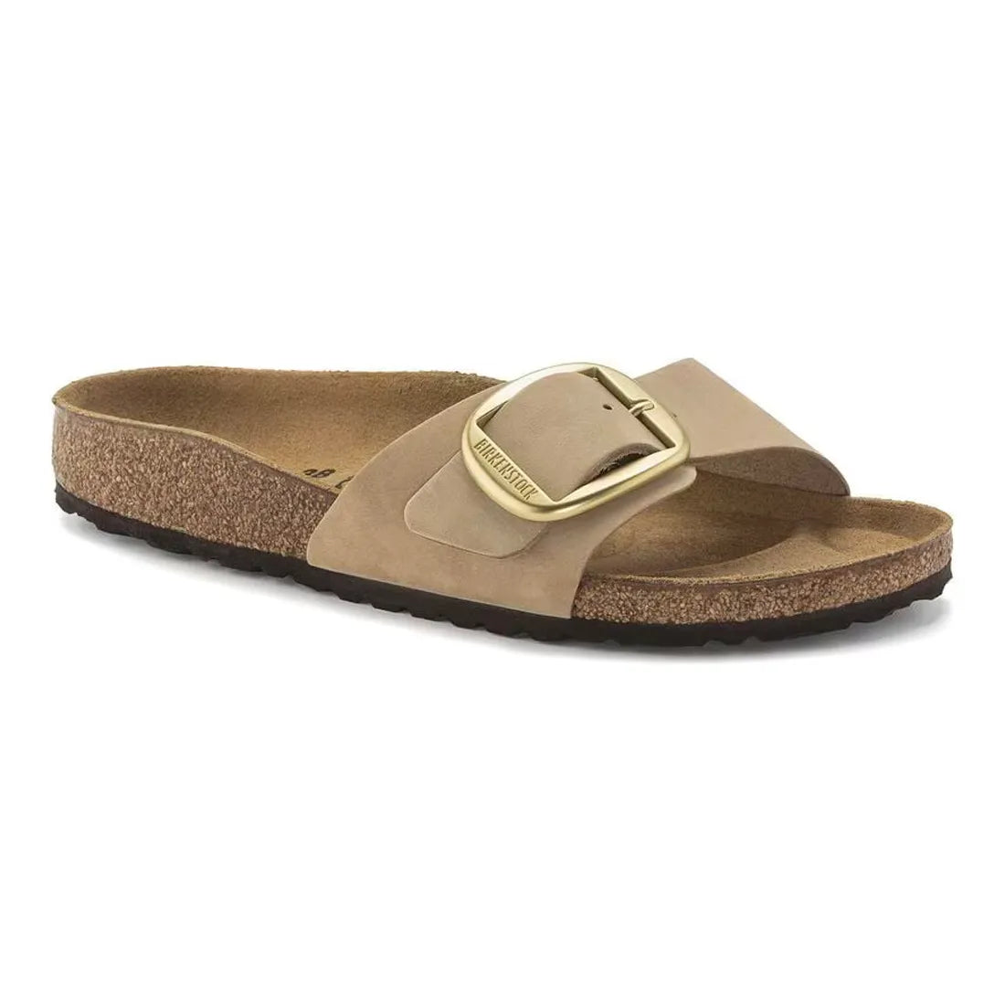 Rivisitazione in chiave moderna dello storico modello Birkenstock, le ciabatte Madrid Big Buckle sono diventate un classico assoluto che piace soprattutto per la sua linea essenziale. Questa versione combina nello stesso modello due motivi di grande successo. Si presenta con un delicato rivestimento dalla brillantezza setata e una grande fibbia ad ardiglione elegante. La tomaia è realizzata in pelle nabuk, resistente e delicato sulla pelle. Grazie al plantare anatomico Birkenstock che segue le linee naturali del piede, le ciabatte Madrid Big Buckle sono il modello alla moda ideale da indossare quotidianamente.