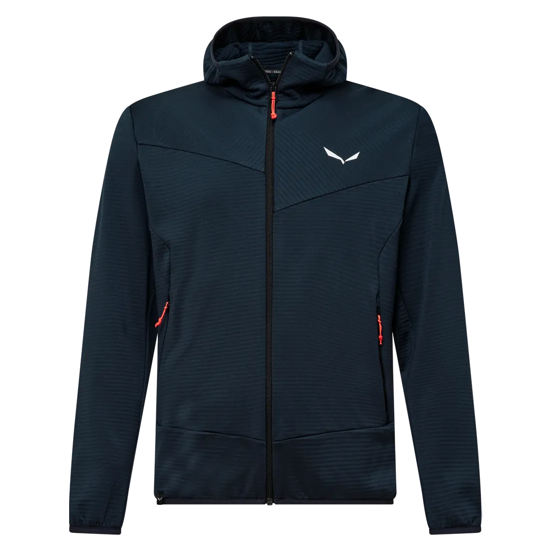 La felpa Puez Altavia offre un buon livello di isolamento termico a un peso ridotto. Il tessuto utilizzato è un sintetico Polarlite da 255 grammi, idrorepellente, che garantisce un'asciugatura rapida, ideale in caso di maltempo. Il tessuto è soffice, estremamente confortevole, con un'estetica a righe e un interno spazzolato che aiuta a regolare l'umidità e a trattenere il calore. Questo strato intermedio versatile è progettato per garantire una buona vestibilità anche sotto un guscio esterno. È dotato di due tasche laterali con cerniera, polsini e orli elasticizzati, e di un cappuccio caldo per proteggere dal freddo.
