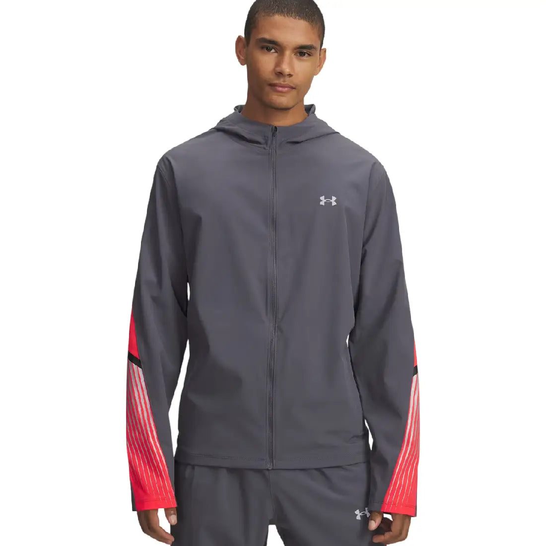 Pratica giacca leggera e protettiva, questa UA Velociti Storm è ideata per chi ama correre anche sotto la pioggia. La tecnologia UA Storm respinge l'acqua impedendo che penetri all'interno mantenendo così il corpo asciutto e protetto. La sua elasticità consente movimenti comodi senza impedimenti e il suo design presenta l'ampia zip forntale di apertura, tasche laterali con cerniera, dettagli catarifrangenti per la massima visibilità anche di notte e il logo stampato sul petto sinistro.Â