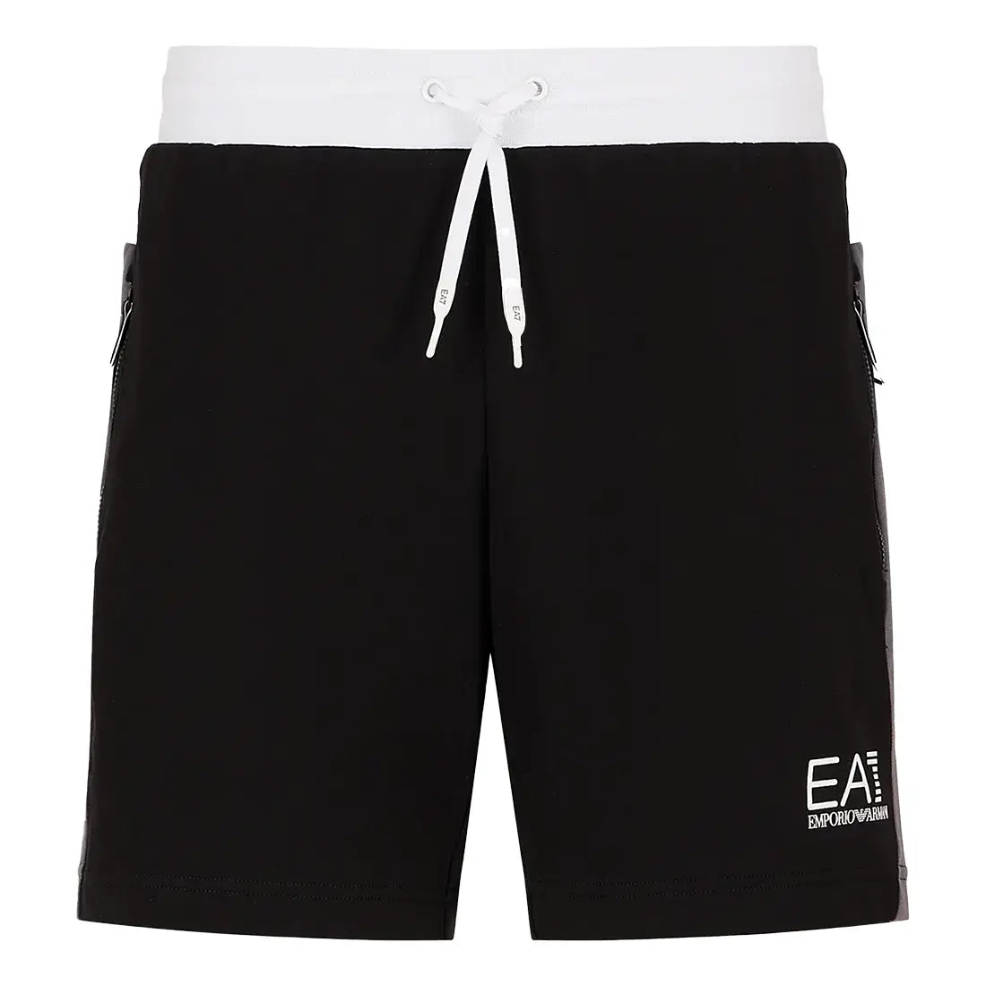 I pantaloncini EA7 Summer Block uomo sono un prodotto casual estivo in misto cotone riciclato dalla vestibilità regolare. Questo modello presenta un elastico in vita con coulisse e due tasche con zip ed è impreziosito da inserti in nylon in tono. I pantaloncini EA7 Summer Block uomo sono genere stiloso, grazie anche al logo EA7 a contrasto sulla gamba sinistra
