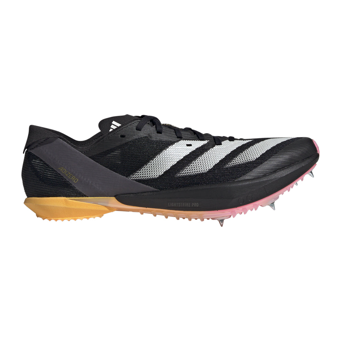 Le scarpe chiodate adidas Adizero Ambition core black unisex sono calzature polivalenti, consigliate per chi pratica l'attività di mezzo fondo e i 3000 mt siepi. La tomaia in tessuto prodotta con materiale riciclato estremamente traspirante, consente il drenaggio dell'acqua ed una asciugatura rapida. L'intersuola Lightstrike Pro a tutta lunghezza abbinata ad una suola con piastra sagomata per 5 chiodini nella zona dell'avampiede, offre un ritorno di energia duraturo. Nella confezioni sono presenti chiodi e chiavetta. Le scarpe chiodate adidas Adizero Ambition core black unisex portano l'atleta ad un livello di attività superiore.