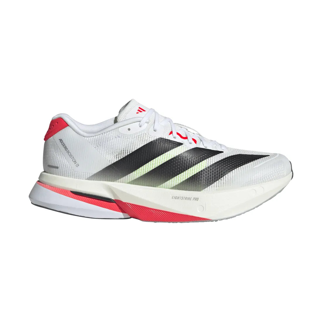 Massima reattività e massima leggerezza senza rinunciare a supporto e ammortizzamento; ecco le qualità di queste nuove adidas Boston 13. Aggiornate rispetto alla versione 12 con un miglioramento della tecnologia EnergyRODS 2.0 (5 barre in fibra di vetro che percorrono la suola nella sua lunghezza e imprimono reattività alla falcata) che spinge la corsa a un livello superiore donando al contempo stabilità nell'appoggio al suolo. L'intersuola possiede la doppia mescola come il modello precedente ma ora con il miglioramento dell'avampiede che possiede il 14% in più di tecnologia Lightstrike Pro mentre la schiuma Lightstrike 2.0, posizionata in basso e nella zona tallonare, favorisce un miglior assorbimento dello shock di impatto col suolo.