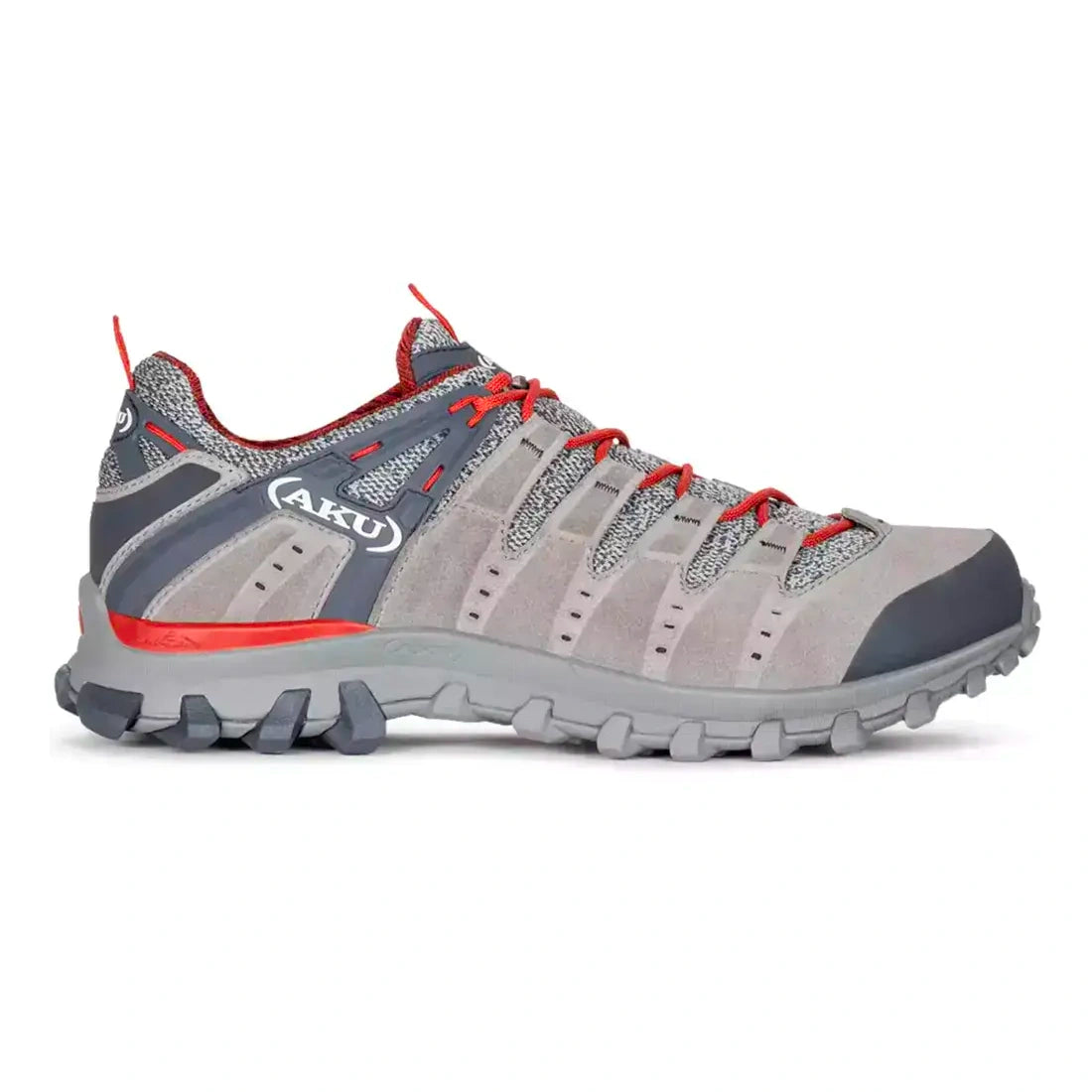 Le scarpe da trekking Aku Alterra Lite Gtx grey uomo sono ideate per camminate non impegnative su sentieri sterrati e umidi tipici di montagna. La tomaia è composta da un doppio strato: uno esterno scamosciato con un design ideato a garantire la massima libertà di movimento del piede senza sacrificarne la protezione nelle zone strategiche e uno strato interno in tessuto morbido e traspirante che lascia evaporare velocemente il sudore verso l'esterno per mantenere il piede asciutto e confortevole. La fodera in Gore-Tex® consente maggior protezione dall'acqua e dalle basse temperature. L'intersuola possiede il design asimmetrico Aku Elica Natural Stride System pensato per distribuire uniformemente il peso corporeo lungo la pianta del piede e consentire un pratico movimento naturale di appoggio al suolo. La suola in materiale resistente all'abrasione, è disegnata con linea pensata per la massima trazione al suolo sia su sentieri sterrati che rocciosi o erbosi. Comode, leggere e ricche di stile, le scarpe Aku Alterra Lite Gtx grey uomo sono l'ideale per ogni amante del trekking e dell'escursionismo.