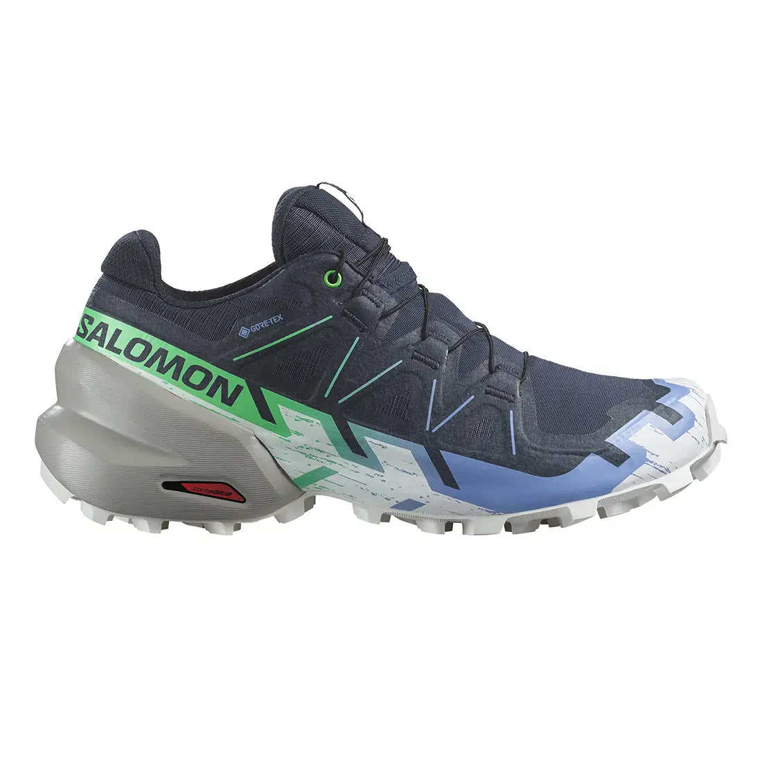 Le scarpe Salomon Speedcross 6 Gtx carbon donna sono ideali per attività di trail run, soprattutto in condizioni fangose. Fedeli alle sue origini leggendarie, la nuova versione è stata alleggerita e resa più confortevole, grazie ad una tomaia rinnovata. La suola Contagrip®, rivisitata, fa si che il fango scivoli via più velocemente e offra un grip ancora più efficace sulle superfici bagnate. La membrana in Gore-Tex® è pensata per donare massima protezione dalle infiltrazioni di acqua e basse temperature, mantenendo il piede sempre asciutto e confortevole. Molto consigliate anche come calzature da uso quotidiano, le scarpe Salomon Speedcross 6 Gtx carbon donna sono un'icona del trail running.