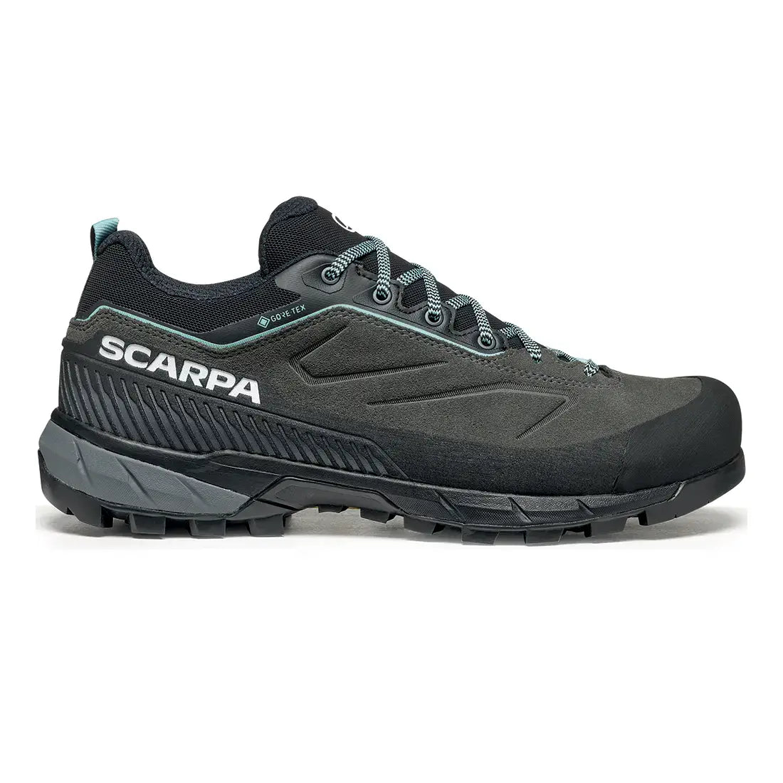 Le scarpe Scarpa Rapid XT Gtx shark donna sono un modello ibrido, adatto sia da avvicinamento che da hiking. Rivestito internamente con la membrana GORE-TEX ePE, assicura totale idrorepellenza anche in condizioni climatiche difficili. Il bordo scarpa in TPU resistente e la suola in gomma Vibram® con disegno MegaGrip, donano massima trazione al suolo assicurando ottima sicurezza nei movimenti e durabilità nel tempo. Il tallone possiede il design Brake System che impedisce di scivolare mentre la punta Climbing zone consente massima presa sul suolo nella salita. Le scarpe Scarpa Rapid XT Gtx shark donna presentano una forma interna ergonomica ed avvolgente alla caviglia e al tallone, che tende poi ad ampliarsi nella zona dell'avampiede per migliorare comfort e stabilità .