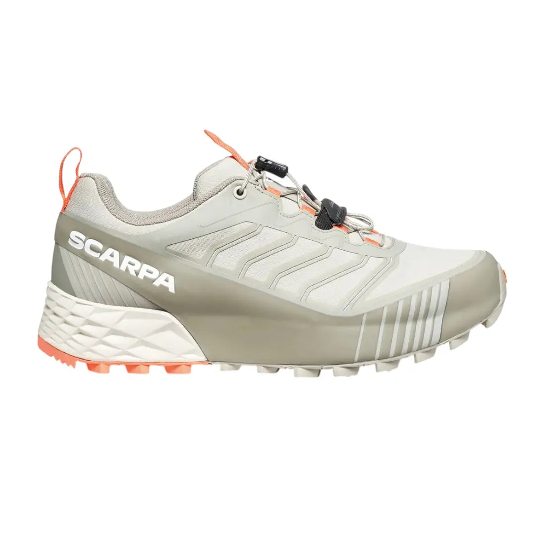 Questo modello Scarpa RIBELLE RUN 2 GTX è pensato e realizzato per chi cerca stabilità e sicurezza sui terreni sconnessi e rocciosi. La tomaia in mesh traspirante e durevole abbinato al sistema EXO di SCARPA, costituisce un esoscheletro integrato per il supporto laterale del piede. Elemento chiave è l’innovativo 3S FRAME, che avvolge integralmente la struttura della scarpa garantendo supporto superiore e protezione ottimale, particolarmente efficace su terreni instabili tipici della corsa in montagna.