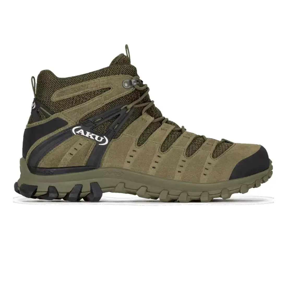 Gli scarponi da fast hiking Aku Alterra Lite Mid Gtx camo green uomo sono ideati per escursioni su sentieri sterrati e umidi tipici di montagna. Sono dotati di una tomaia composta da un doppio strato; uno esterno scamosciato con un design ideato a garantire la massima libertà di movimento del piede senza sacrificarne la protezione nelle zone strategiche e uno strato interno in tessuto morbido e traspirante che lascia evaporare velocemente il sudore verso l'esterno per mantenere il piede asciutto e confortevole. La fodera in Gore-Tex® consente maggior protezione dall'acqua e dalle basse temperature. L'intersuola è dotata del design asimmetrico Aku Elica Natural Stride System, pensato per distribuire uniformemente il peso corporeo lungo la pianta del piede e consentire un pratico movimento naturale di appoggio al suolo. La suola in speciale mescola Tenuta, è disegnata con una linea pensata per la massima trazione al suolo sia su sentieri sterrati che rocciosi o erbosi. La calzata Performance Fit presente in questa calzatura, serve per aumentare la sensibilità e la precisione durante la camminata. Comodi, leggeri e ricchi di stile, gli scarponi Aku Alterra Lite Mid Gtx camo green uomo sono l'ideale per ogni amante dell'escursionismo.
